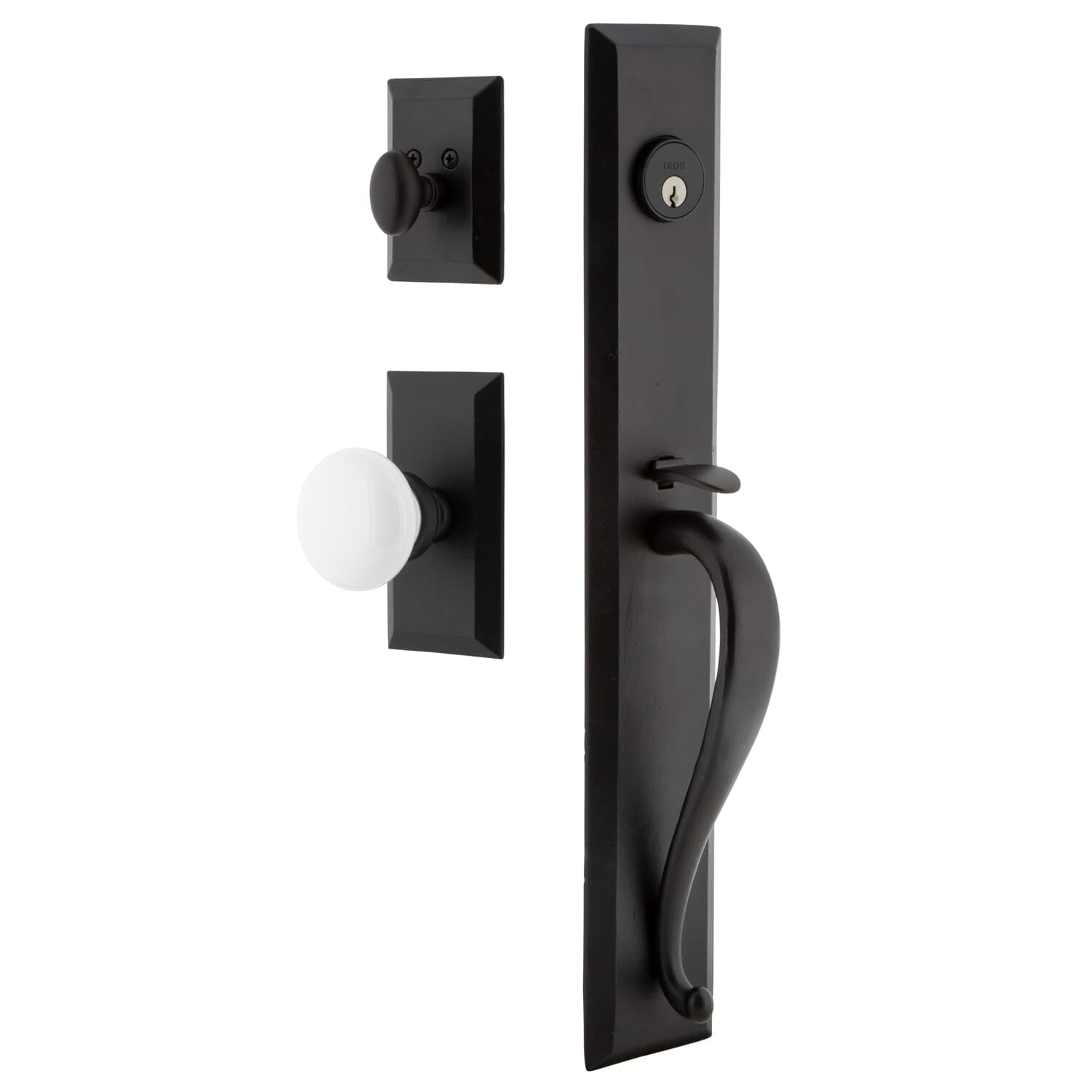 The modern simplicity of the Keep One-Piece Handleset creates a strong, welcoming effect on any exterior front door. The substantial A-Grip provides a comfortable hold and timeless appeal, making it a distinguished choice for stately entryways. Each Ageless Iron product has been tested extensively in Florida exposure for UV resistance and anti-corrosion.
