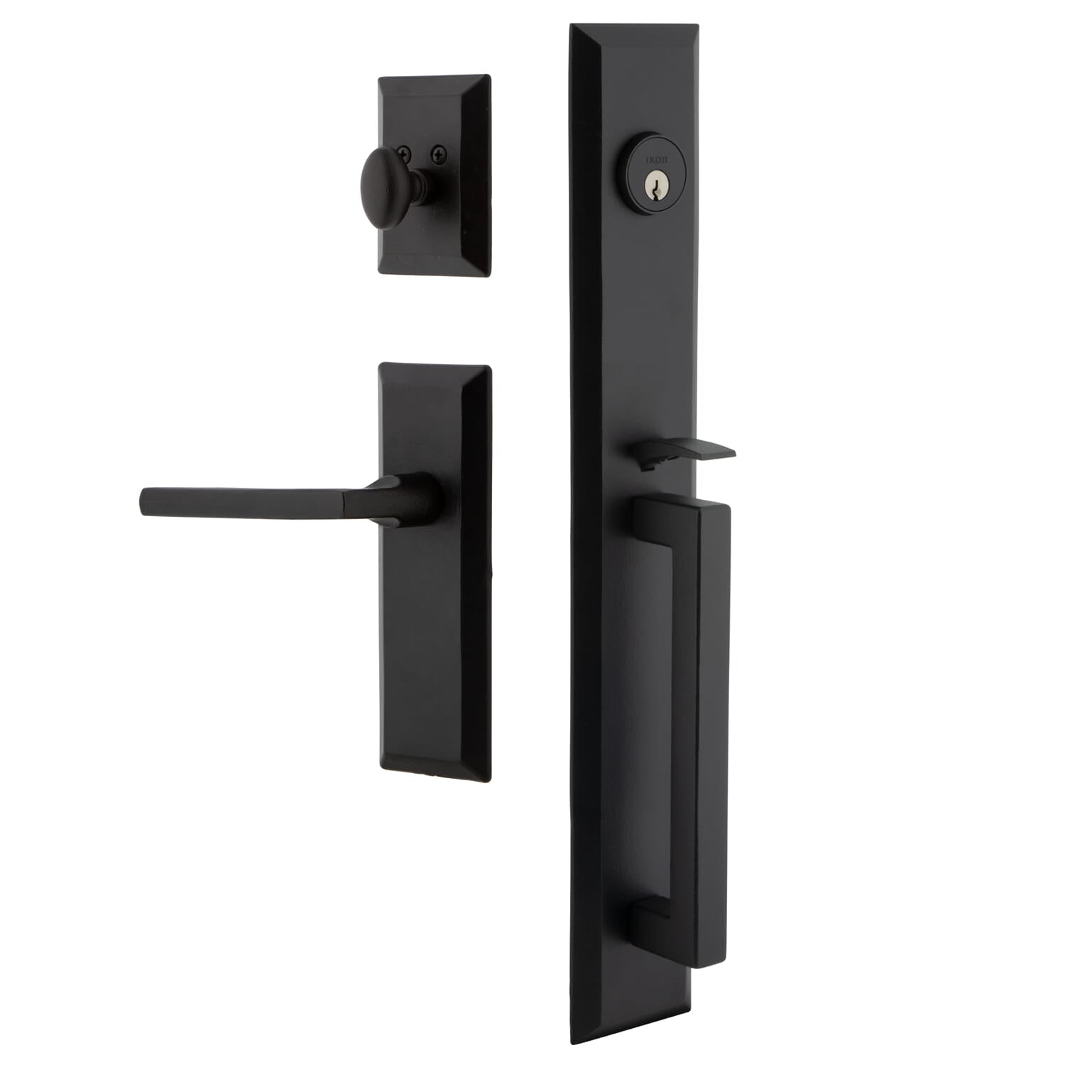 The modern simplicity of the Keep One-Piece Handleset creates a strong, welcoming effect on any exterior front door. The substantial D-Grip provides a comfortable hold and timeless appeal, making it a distinguished choice for stately entryways. Each Ageless Iron product has been tested extensively in Florida exposure for UV resistance and anti-corrosion.